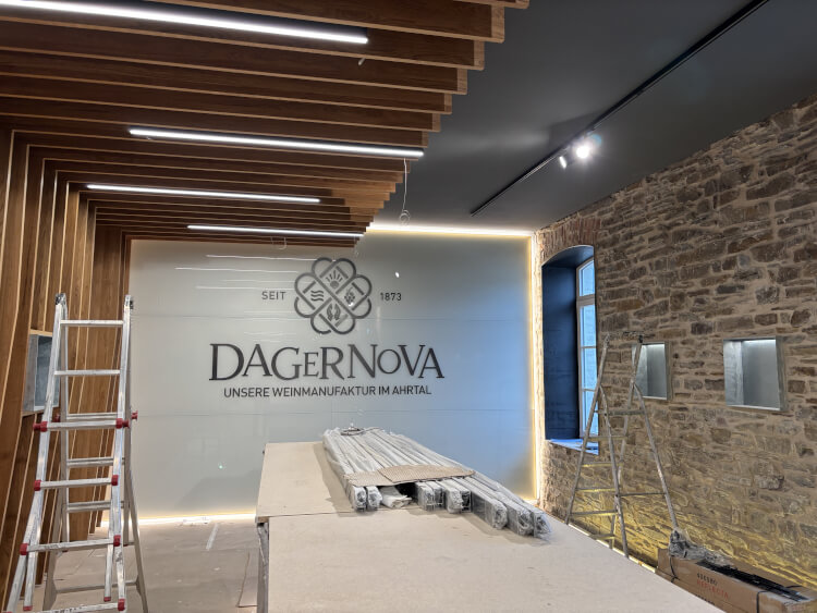 Nach der Flut 2021Das historische Genossenschaftsgebäude der Dagernova in Dernau, malerisch direkt an der Ahr gelegen, wurde bei der Flutkatastrophe im Juli 2021 so stark beschädigt, dass es völlig entkernt werden musste und nun aufwändig wieder aufgebaut wird.