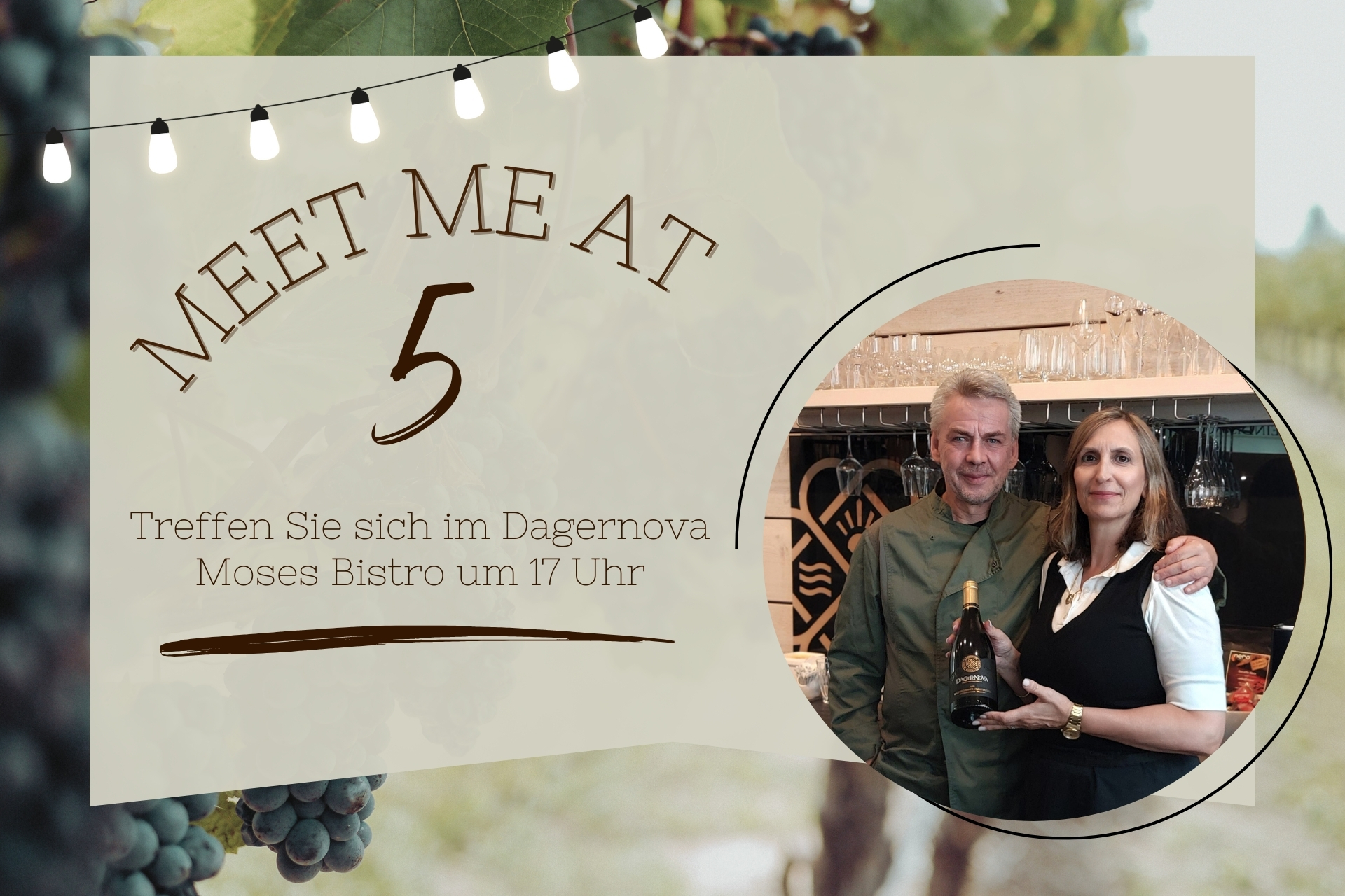Treffen Sie sich im Dagernova Moses Bistro um 17 Uhr. Lassen Sie den Arbeitstag bei uns gemütlich ausklingen und genießen Sie einen unserer After-Work-Snacks bei einem guten Glas Wein.